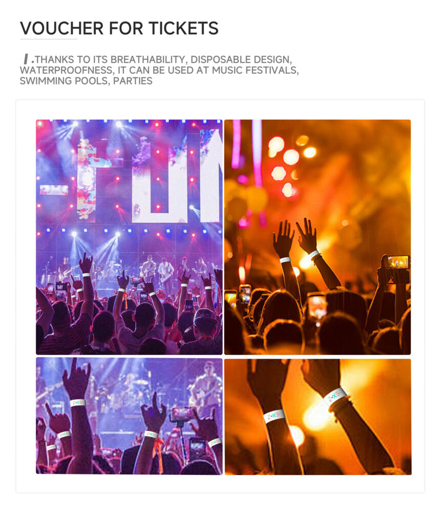 Also known as: Tyvek paper bracelet, disposable wrist strap, waterproof paper event band, concert entry wristband.