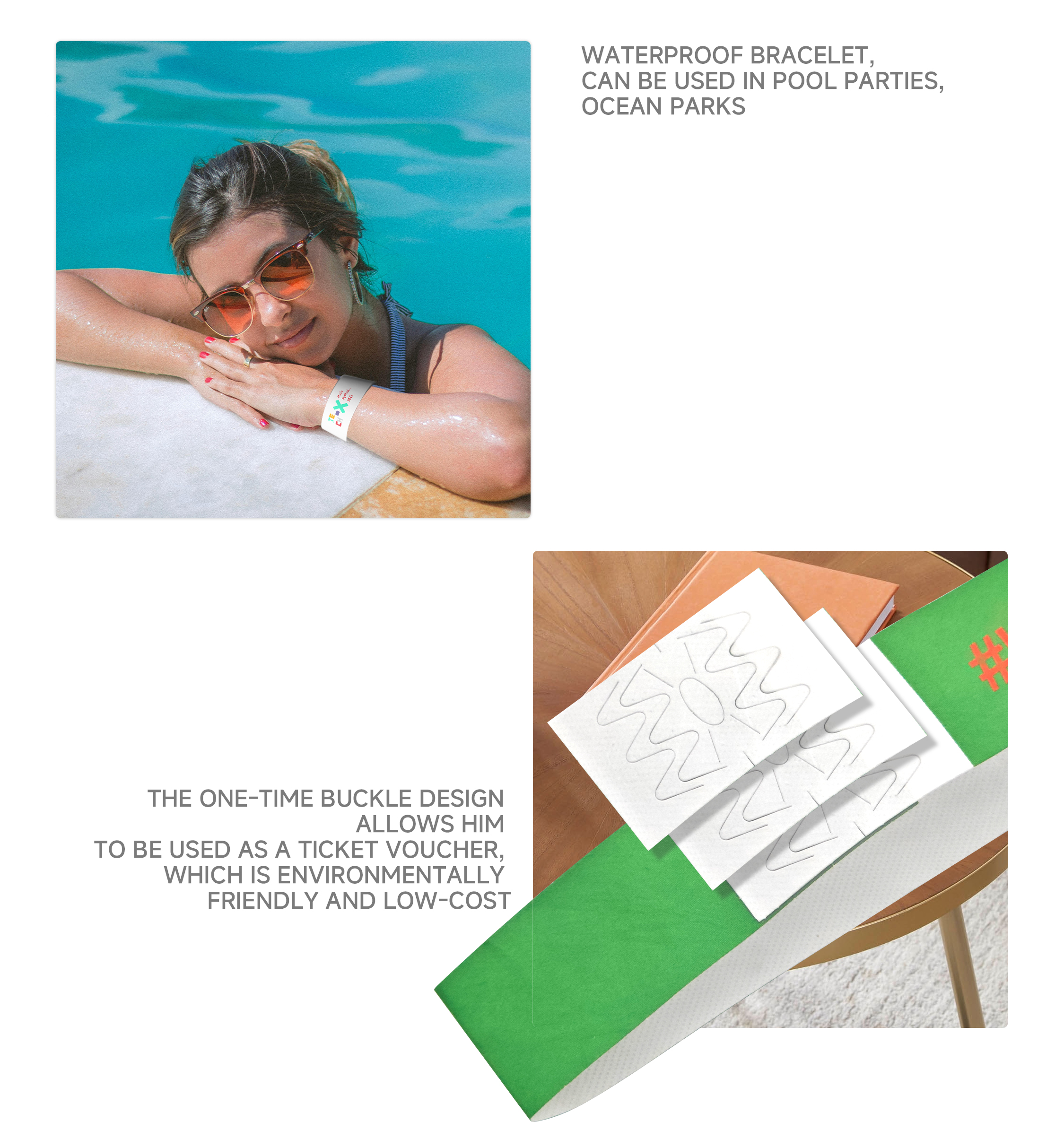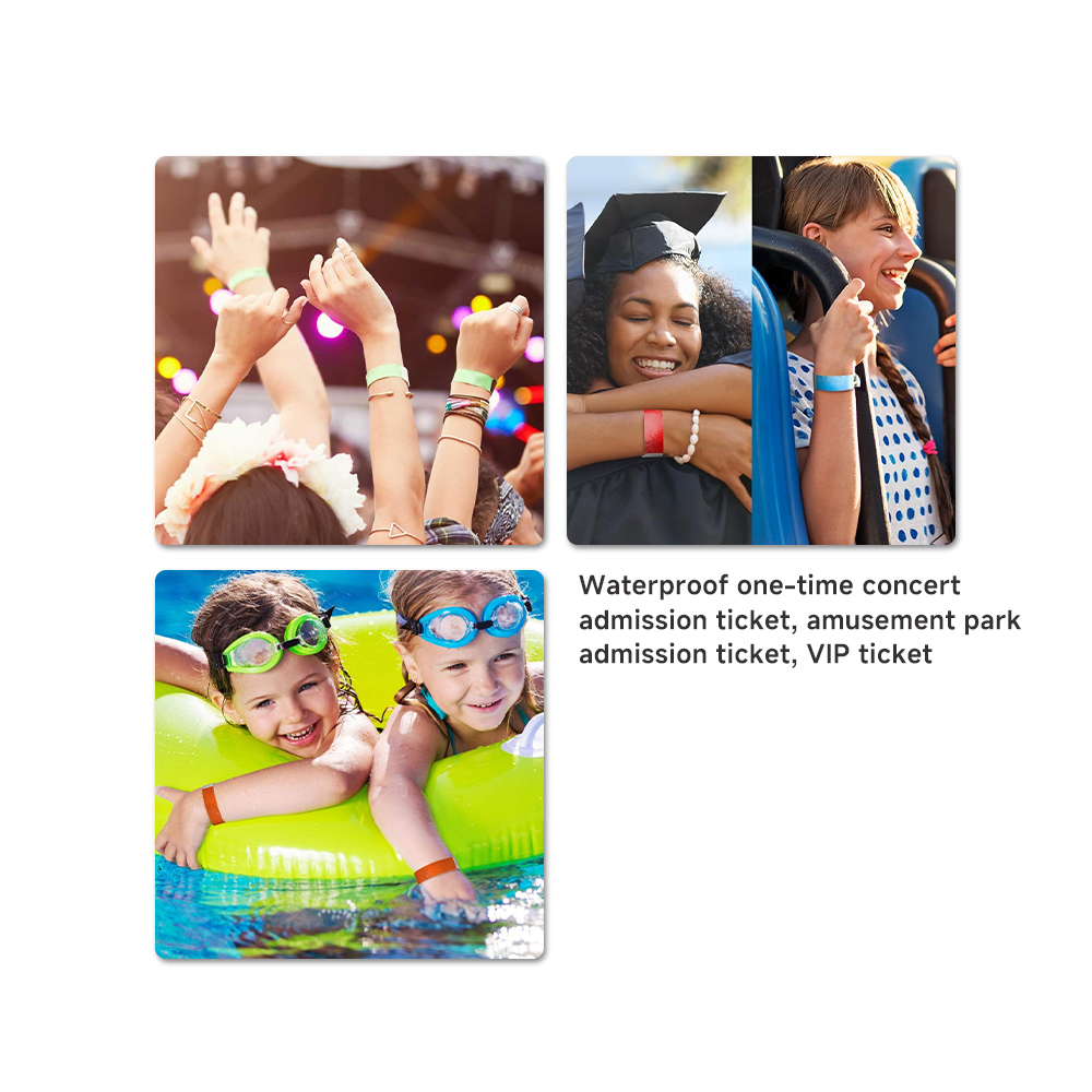 The Tyvek paper wristband is a disposable, waterproof, and tamper-proof event bracelet widely used for