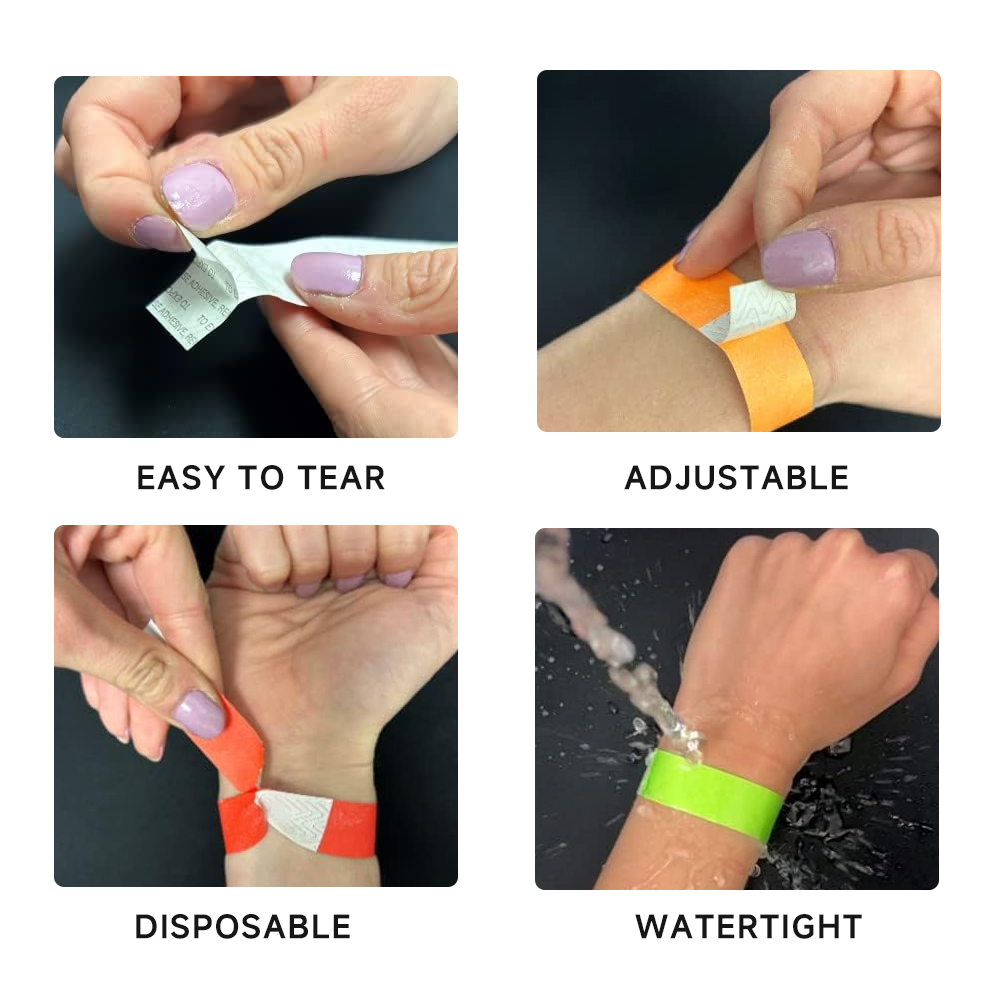 Also known as: Tyvek paper bracelet, disposable wrist strap, waterproof paper event band, concert entry wristband.