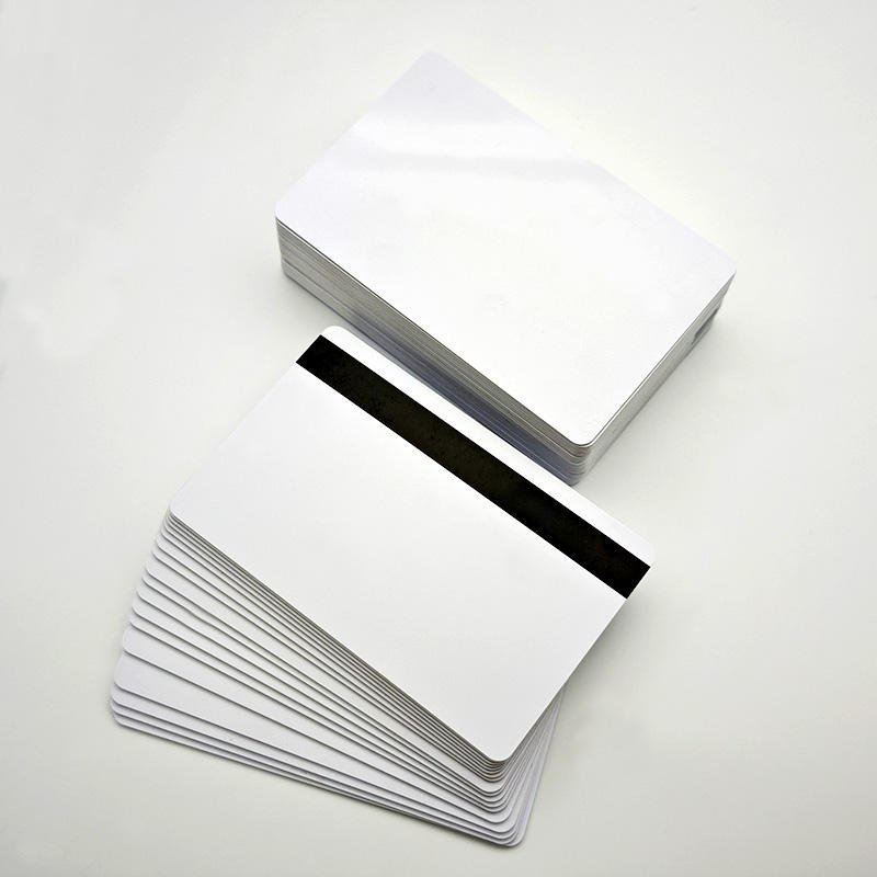 The surface supports inkjet (with PVC card trays), thermal retransfer printers (e.g., Fargo, Evolis, Zebra) and offset CMYK. For direct-to-card dye-sub, we recommend retransfer for best edge-to-edge quality.