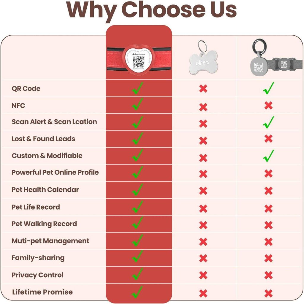 | Smart ID | QR code (static/dynamic short link to pet profile); optional NFC (13.56 MHz NTAG213), NDEF compatible |